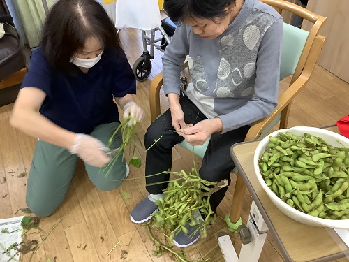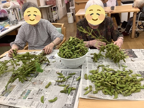 たくさんの黒枝豆。塩ゆでしたり、豆ご飯にしたり、潰してスイーツにしたりと、