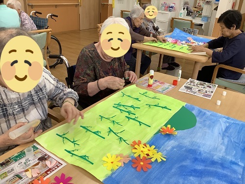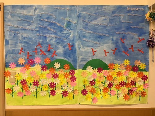 今回は秋の壁面飾りを皆様に作っていただいた様子をご紹介いたします。