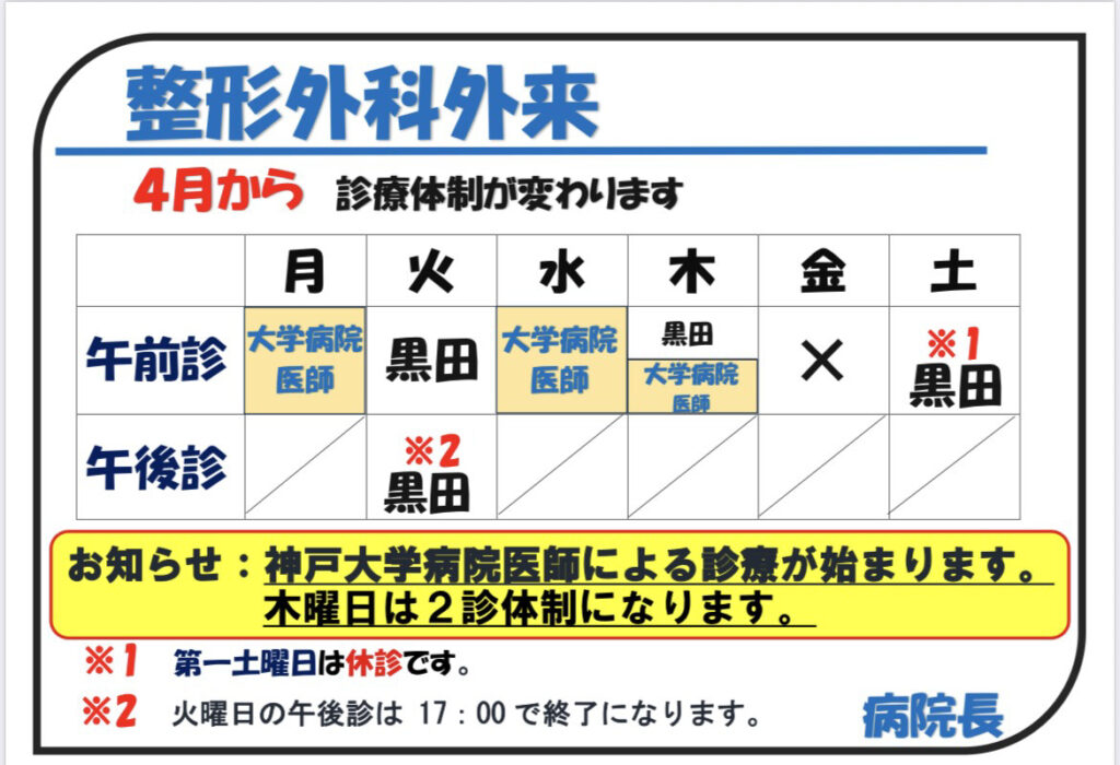4月より整形外科外来の診療体制が変わります。