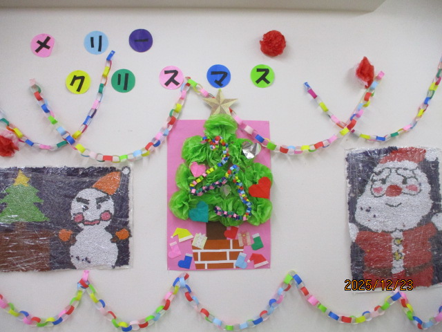 この日のため、入居者の皆様と飾りを作り上げクリスマス会は豪華になりました。