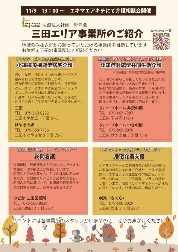 11月9日(日)13:00~15:00 エキマエアキチ(三田市弥生が丘1-8)にて